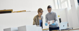 Inken Holubec und Wibke Neugebauer bei der Recherche im RED / LUKAS Archiv in Düsseldorf.